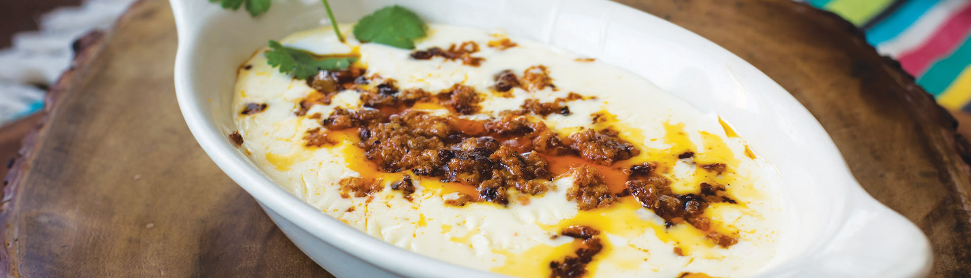 Grilled chicken over a bed of rice. Covered with our special cheese sauce and tortillas.