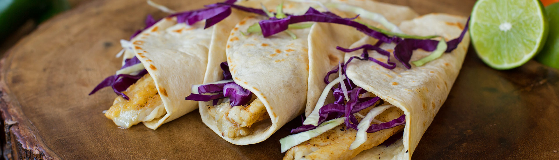 Your choice of flour or corn tortillas, stuffed with fish fillet, topped with fresh cabbage with chef salsa. Served with rice and pico de gallo.