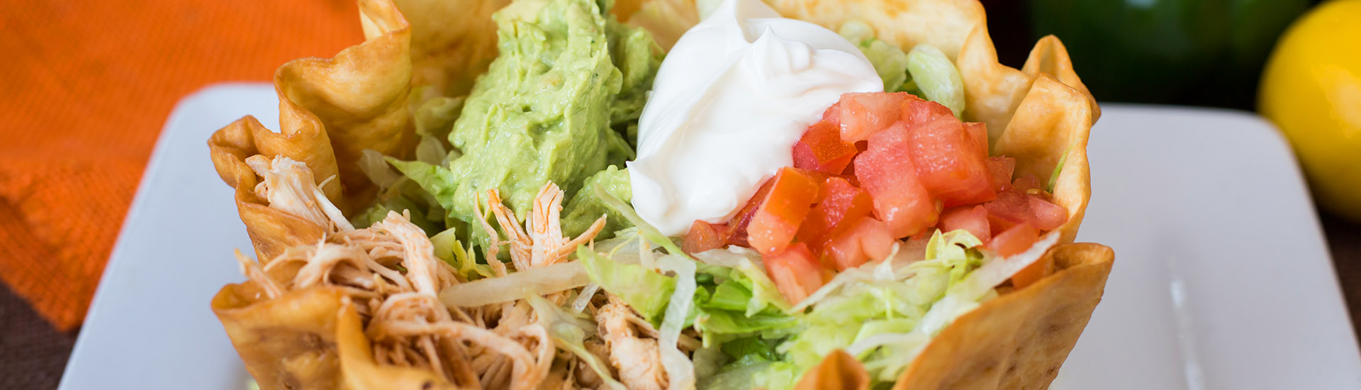 Flour tortilla bowl filled with ground beef or chicken, cheese, beans, lettuce, guacamole, pico de gallo and sour cream. Fajita tacos salad 11.99 Add steak $1